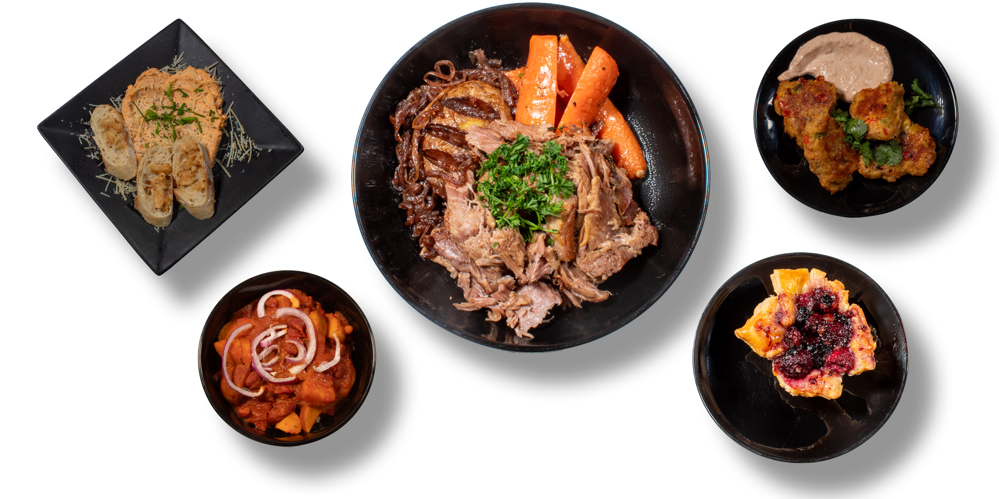Slow-roasted garlic pork butt, juicy and fork-tender, served alongside savory French onion potatoes and roasted carrots glazed with honey butter. A heroic plate worthy of storming castles, breaking curses, and saving true love.