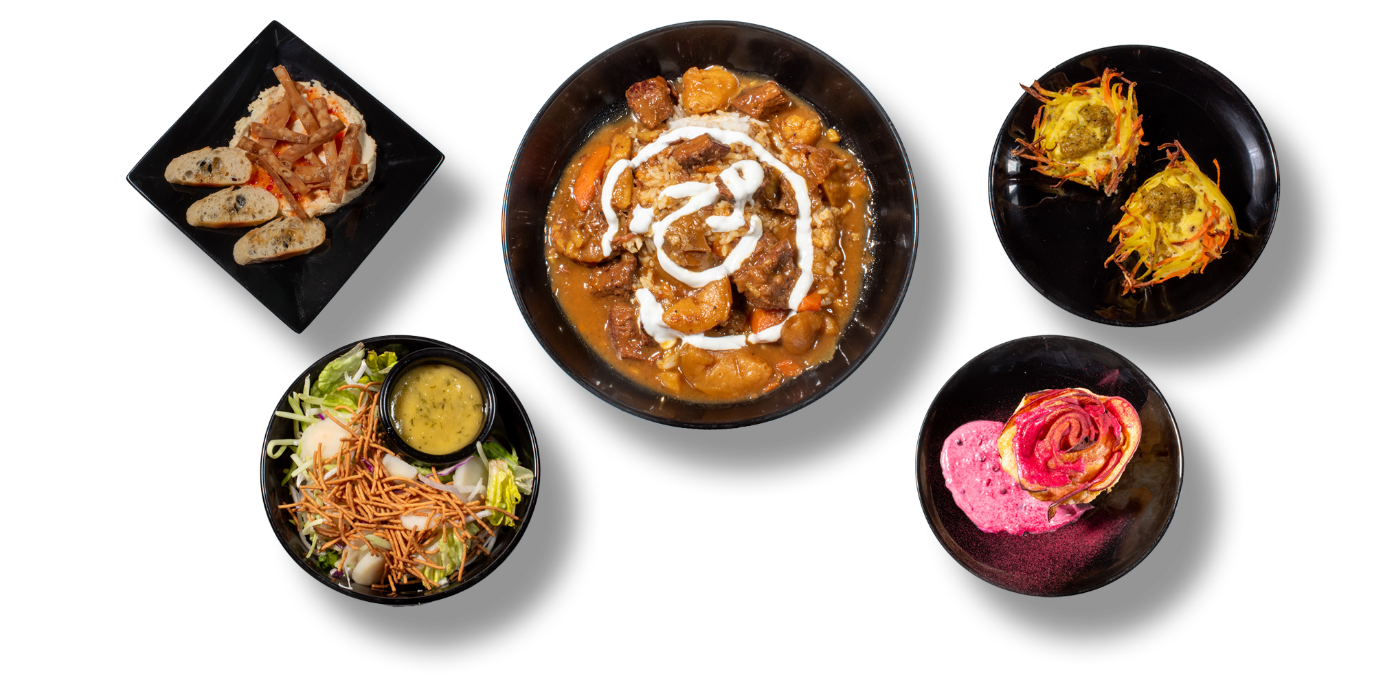 A cozy opening from the edge of the camphor tree: creamy garlic-miso cream cheese topped with a crunchy wonton crumble, served alongside sesame-butter crostini and finished with a drizzle of sweet chili glaze. Comforting, savory, and perfect for sharing while you wait for the soot sprites to arrive.